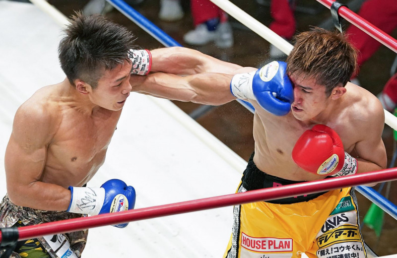 井上浩樹の右眼に永田(左)のパンチがクリーンヒットする