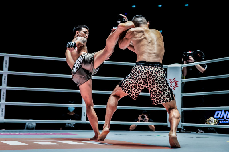 鋭いハイキックを放つミートサティート(C)ONE Championship