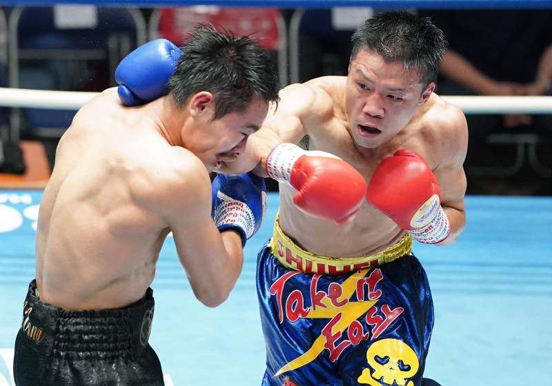 土屋の強烈な右がヒットする。橘が危うい場面もあったが耐えた(Naoki Fukuda)