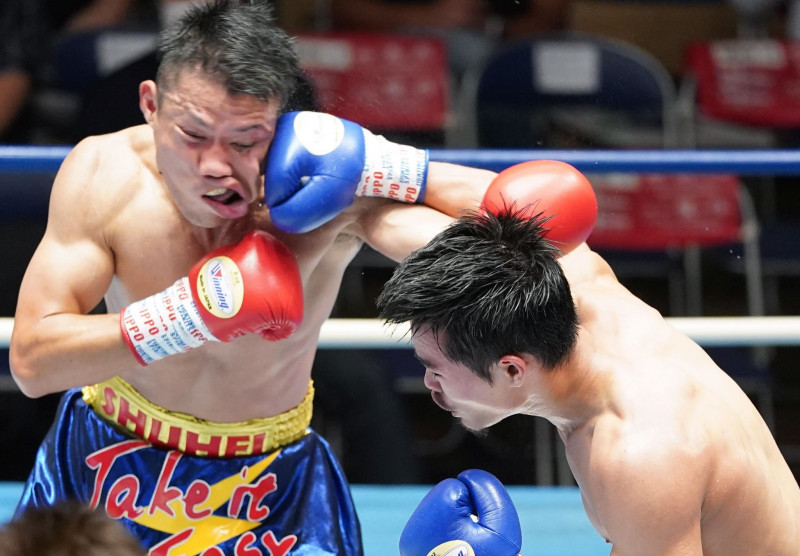 互いに譲らぬ展開。橘の右フックが土屋にクリーンヒットする(Naoki Fukuda)