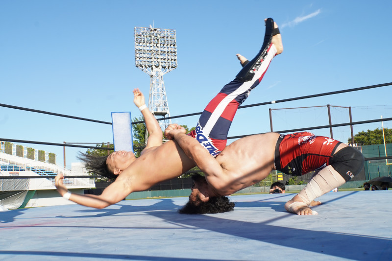 ジャーマンスープレックスを決めるシュレック(c)ハードヒット実行委員会