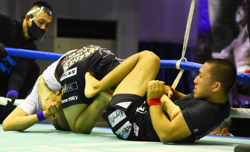 ヒールホールドで八田(左)を秒殺した米倉(右)