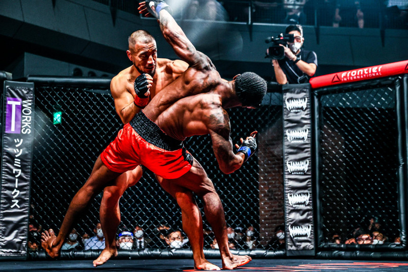 手塚の左フックがクリーンヒット、カルンダが崩れ落ちる瞬間(C)SUSUMU NAGAO