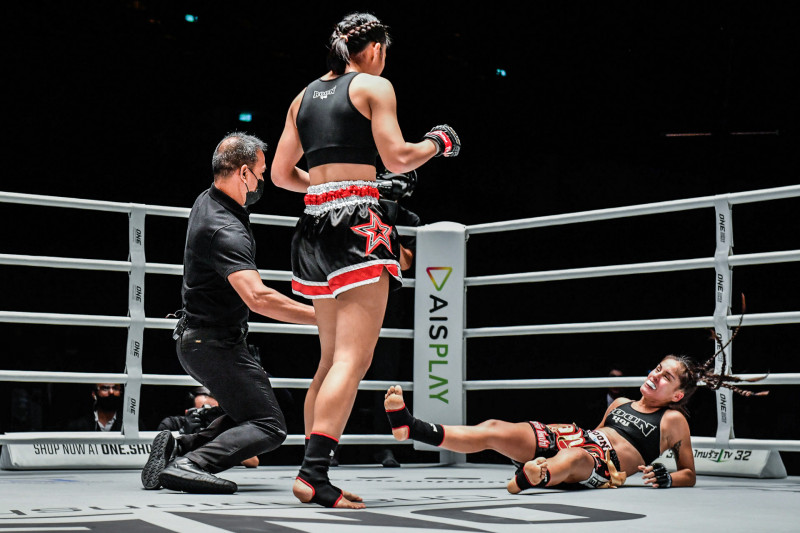 吹っ飛ぶように倒れるロペス(C)ONE Champinship