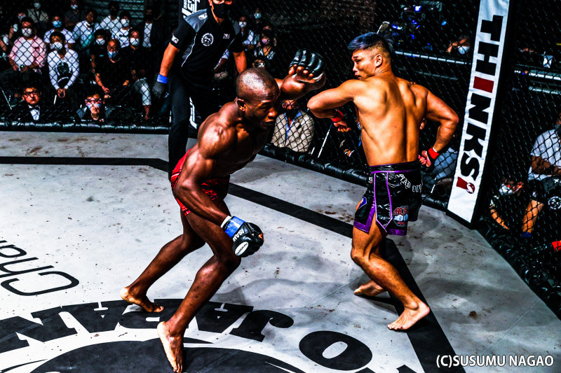 大尊の左フックがクリーンヒット、マックスがダウンする瞬間