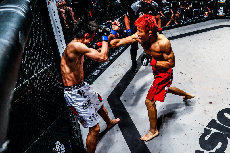 右ストレートをヒットさせる猿丸(C)SUSUMU NAGAO
