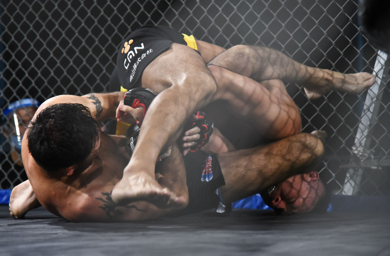 岸本(右)から腕十字で一本勝ちした鈴木(左)