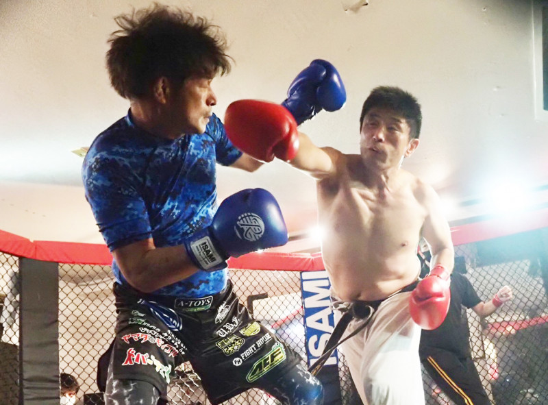 空手家の中川(右)がタイヤファイトの関東、関西統一王者となった。