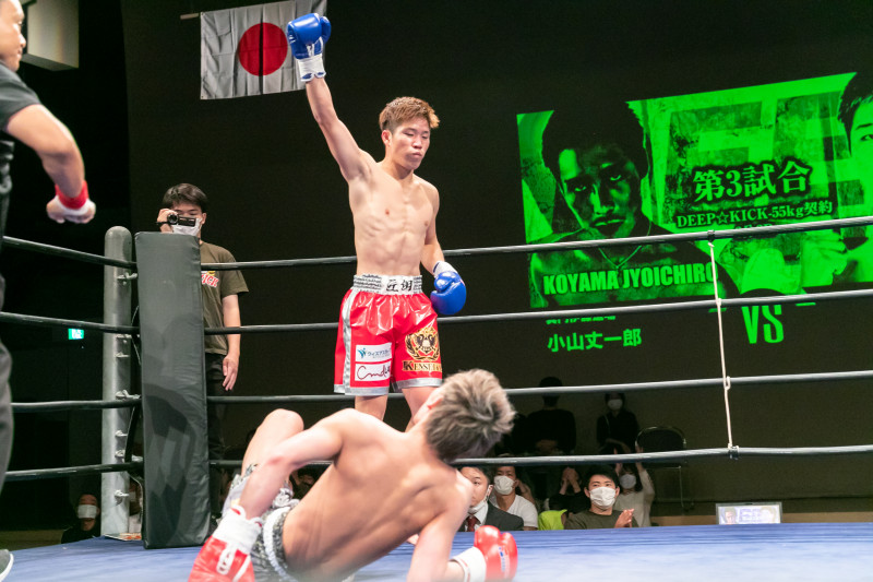 匠朗が左のパンチで小山からダウンを奪いTKO勝利