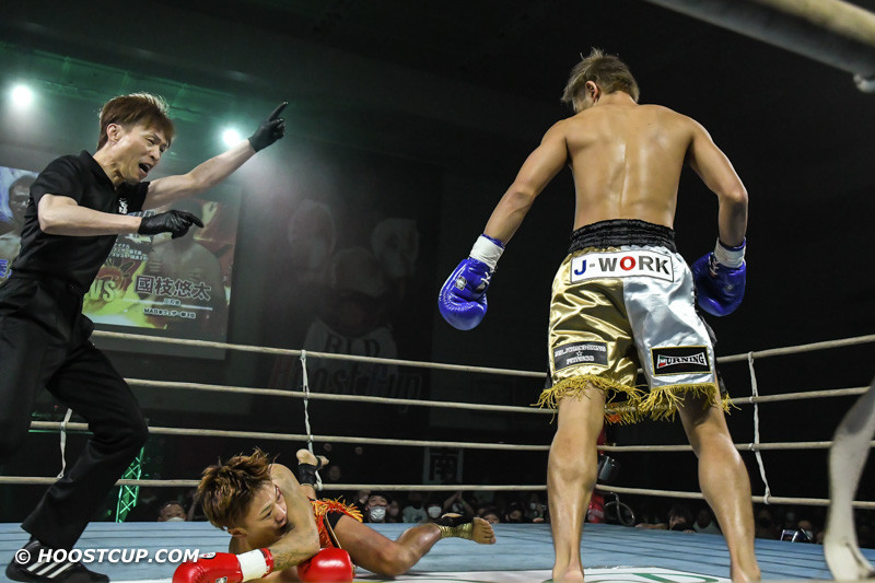 泰良の右クロスで國枝がダウン