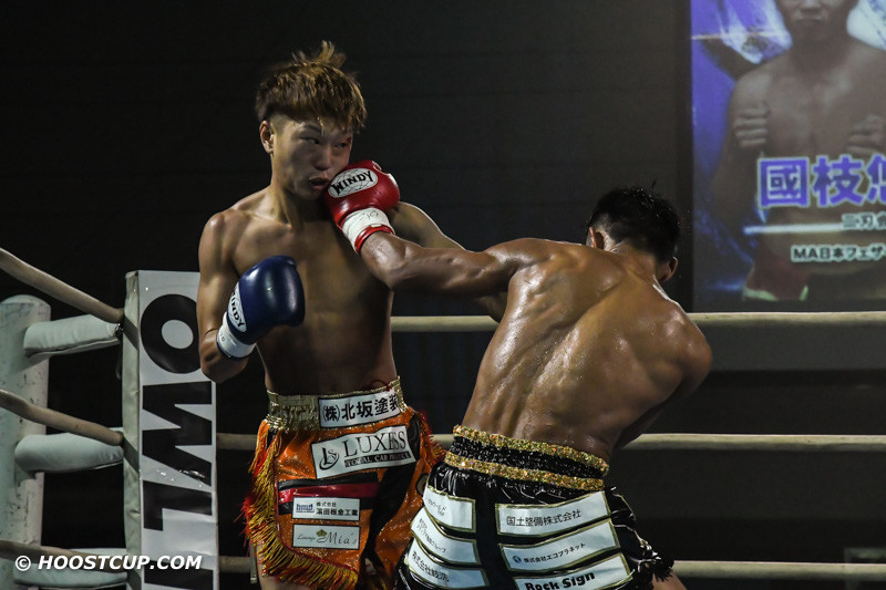 激しく打ち合う國枝(左)とヘンリー