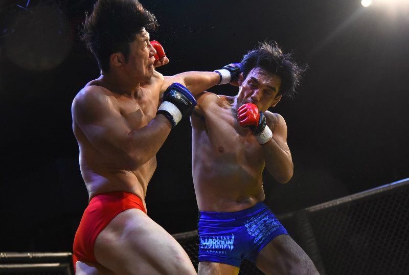近藤(右)と激しく打ち合う小林(左)