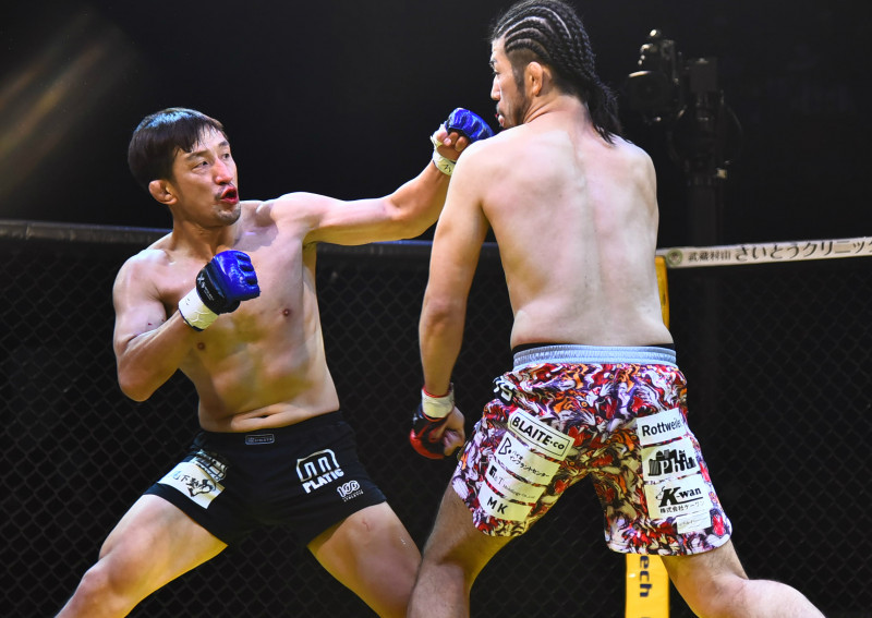 上迫(右)に判定勝ちした松本(左)