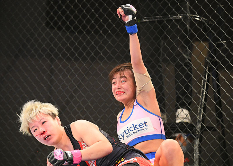 勝利の瞬間、さくら(右)は喜びを爆発させた