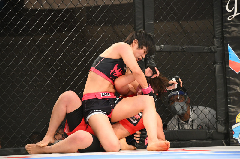 ミッコ(上)がパウンドでゆりなを苦しめる