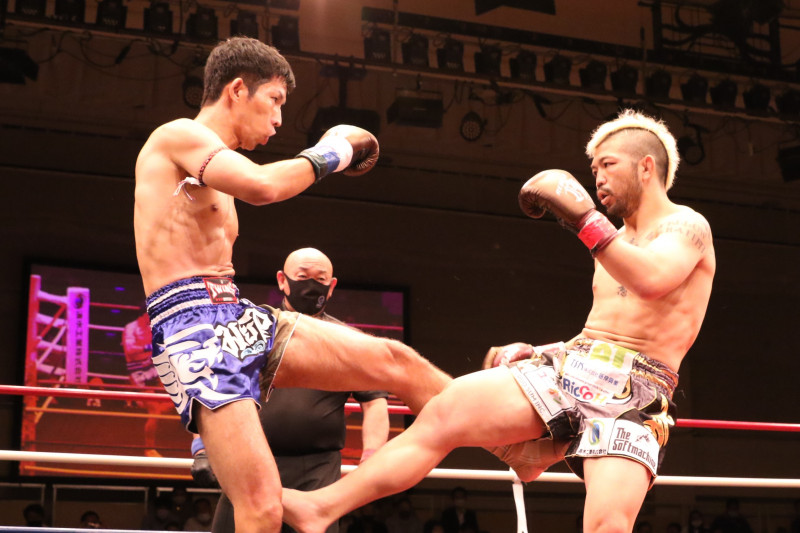 小原が名門・キングムエで鍛えたムエタイ技術で渡慶次からカットを奪いTKO勝利