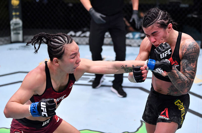 左ストレートで攻めるシャオナン(getty/Zuffa LLC/UFC)