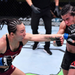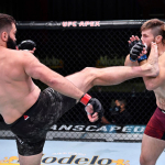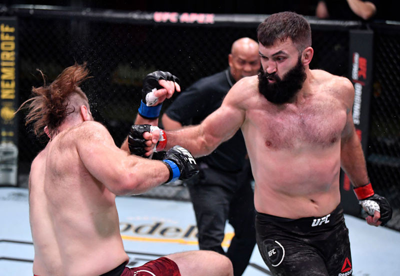 強烈なパンチを放つアルロフスキー(getty/Zuffa LLC/UFC)