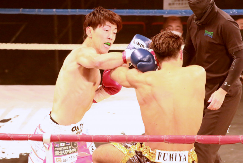 正確にパンチをヒットさせる山際