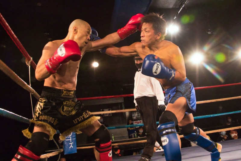 2R 長友(左)をコーナーに追い詰める幸島(右)