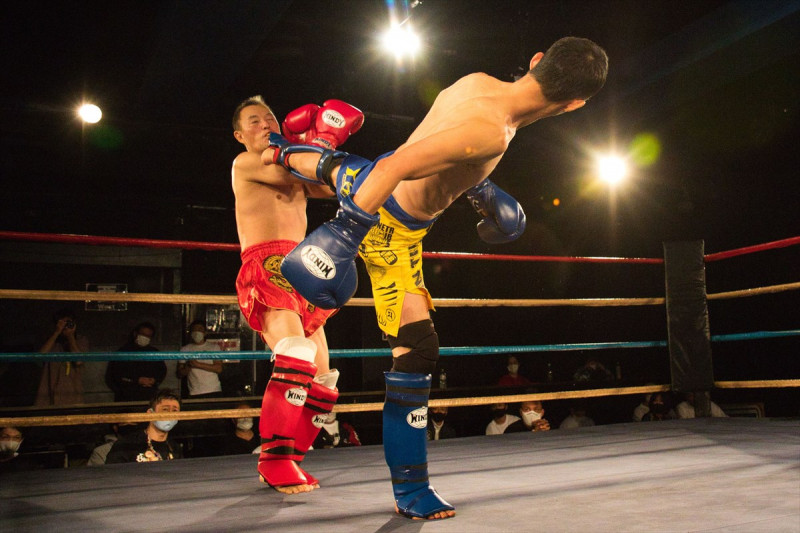 2R 田中(右)の左バックキックがしんのすけ(左)にヒット