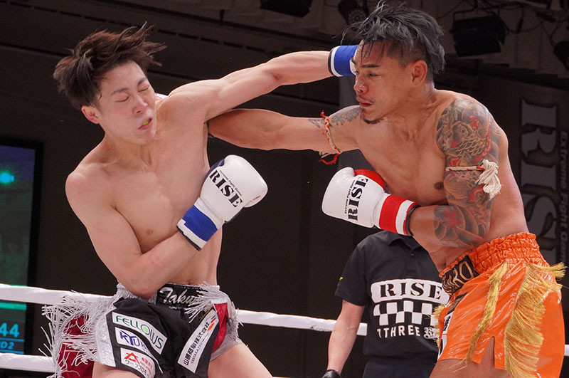 抜群のタイミングでカウンターを合わせる実方(左)