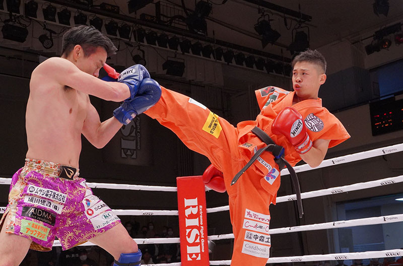 右ハイキックを放つ