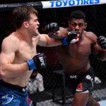 強烈な左ストレートをヒットさせるバックリー(右)(getty/Zuffa LLC/UFC)