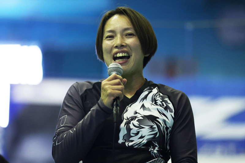 笑顔でマイクを握る杉内