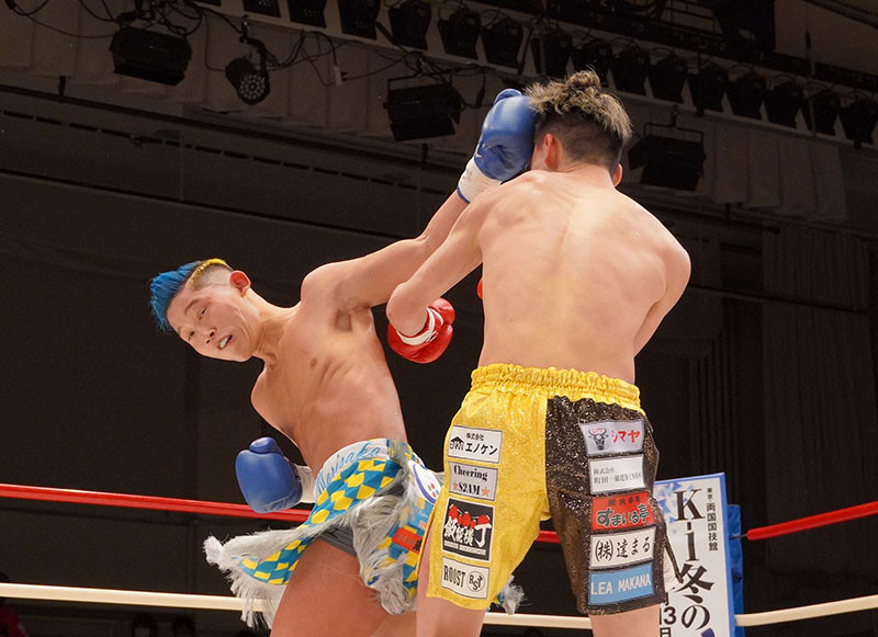 森坂(左)の得意なバックブローが炸裂した