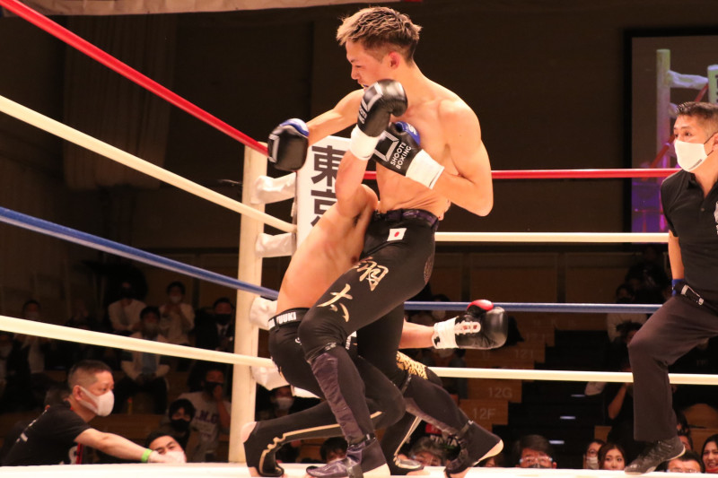 2R、ダウンを奪われた手塚が逆転のダウンを奪い返す