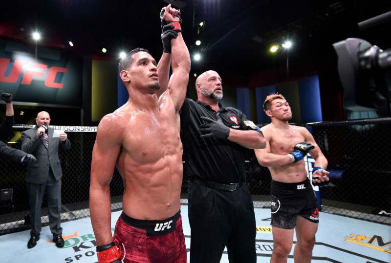 佐藤(右)が無念の一本負け(getty/Zuffa LLC/UFC)