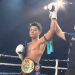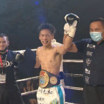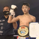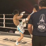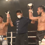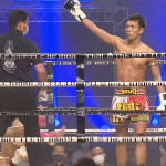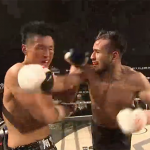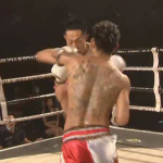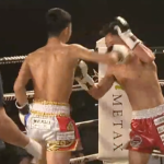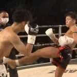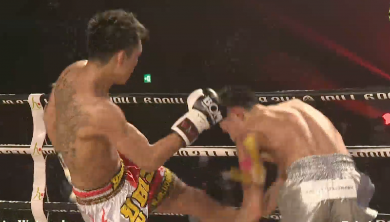 ローキックでダウンを奪う渡辺