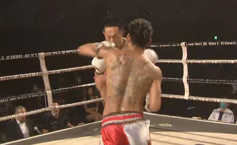 この左ストレートがヒットし、渡辺がTKO勝利を決めた