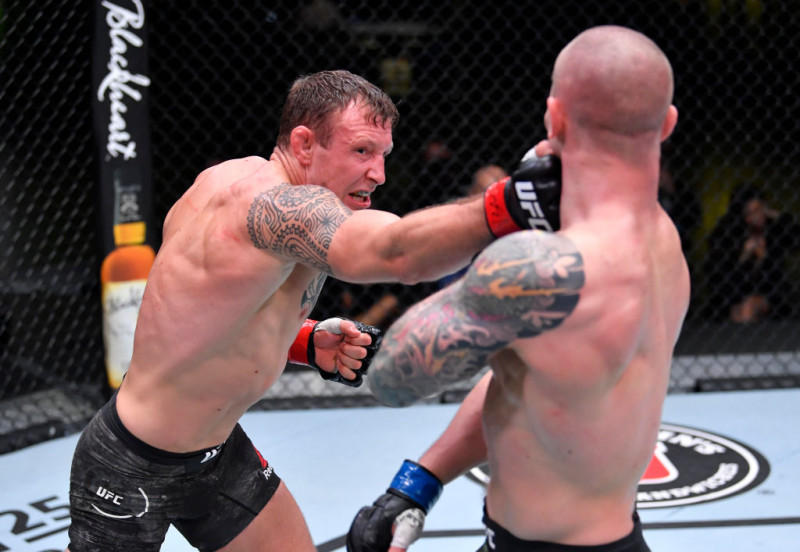 パンチを飛ばすハーマンソン(getty/Zuffa LLC/UFC)