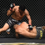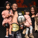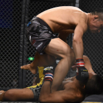 パウンド連打で鍵山(下)を仕留めた山本(上)