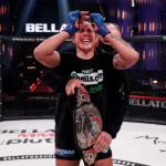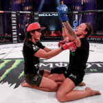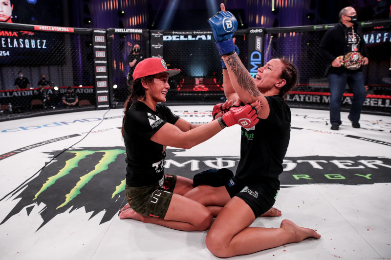 勝利を喜ぶ新王者ベラスケス(右)とそれを称える、初めて敗れたマクファーレン(左)