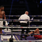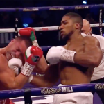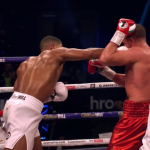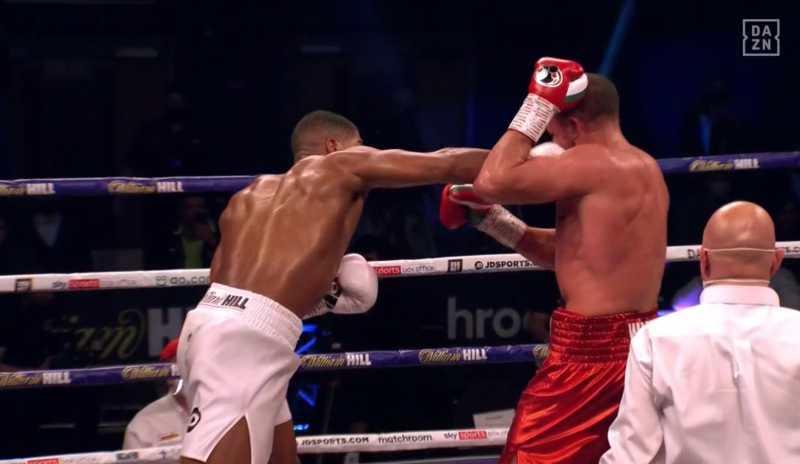 ジョシュアはこの右ストレートでKO勝利した(C)DAZN