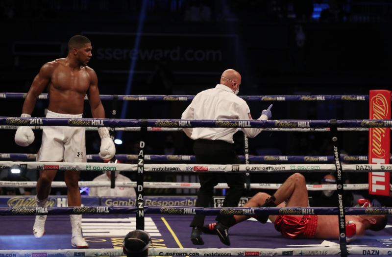 右ストレートで仰向けに倒れるプレフ(C)DAZN