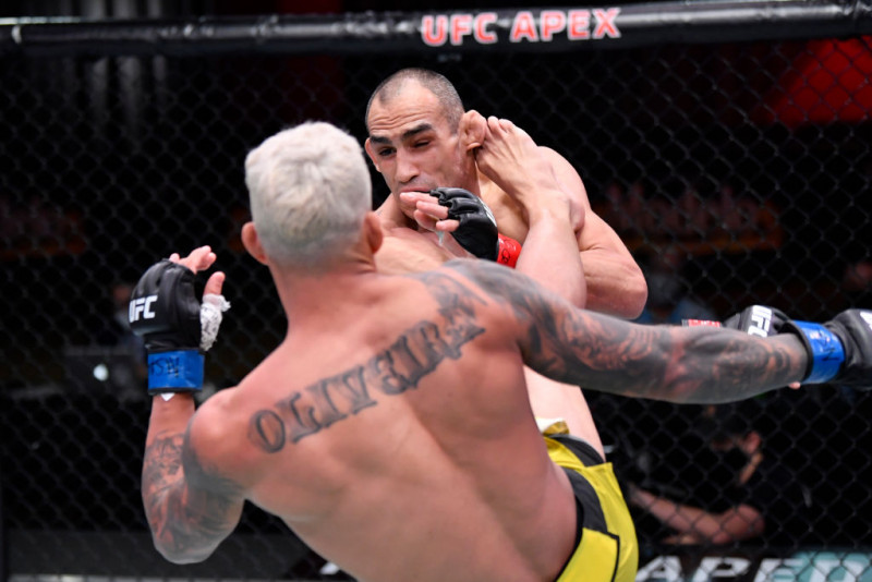 再起戦で完敗したファーガソン(右奥)(getty/Zuffa LLC/UFC)