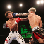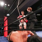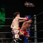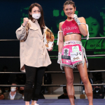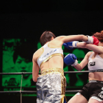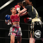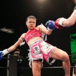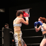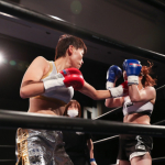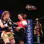 気迫溢れる表情でキックを繰り出すerika♡