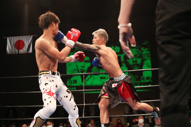 的確なパンチで攻め込んだ祐典(右)