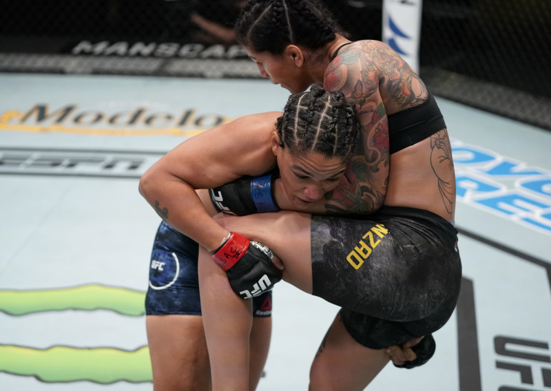 テイクダウンを仕掛けるユーバンクス(左)(By courtesy of Zuffa LLC / Getty Images)