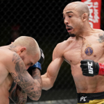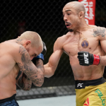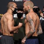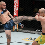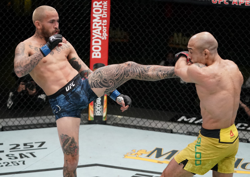 蹴り技を多用するヴェラ(左)(By courtesy of Zuffa LLC / Getty Images)