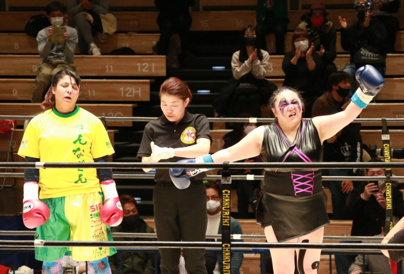 ミスモンゴル(右)がキックデビュー戦で勝利