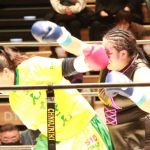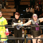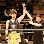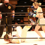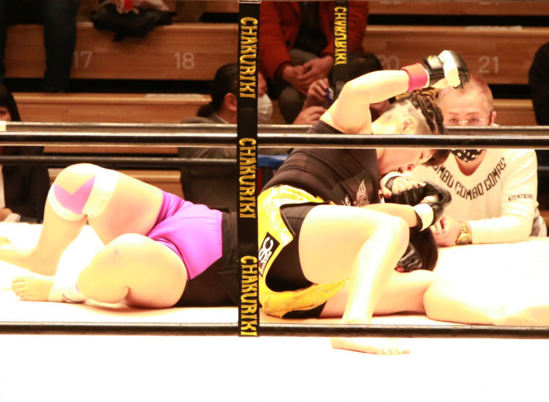ウエダが袈裟固めからのパウンドで勝利