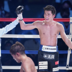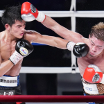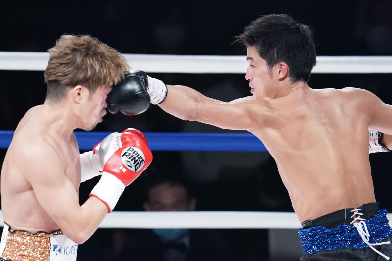 三代の脱力したスピードあるジャブが伊藤にクリーンヒットした瞬間(Naoki Fukuda)