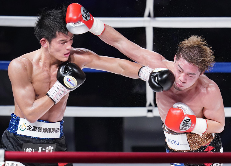 三代の左がカウンターで伊藤のアゴを捉える(Naoki Fukuda)