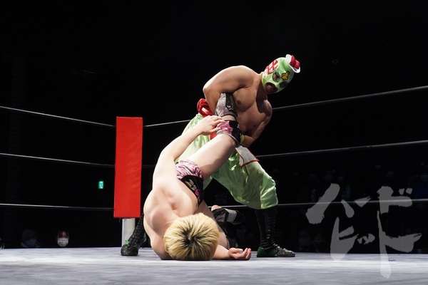 覆面をかぶったっま戦うSUSHI(上)©ハードヒット実行委員会