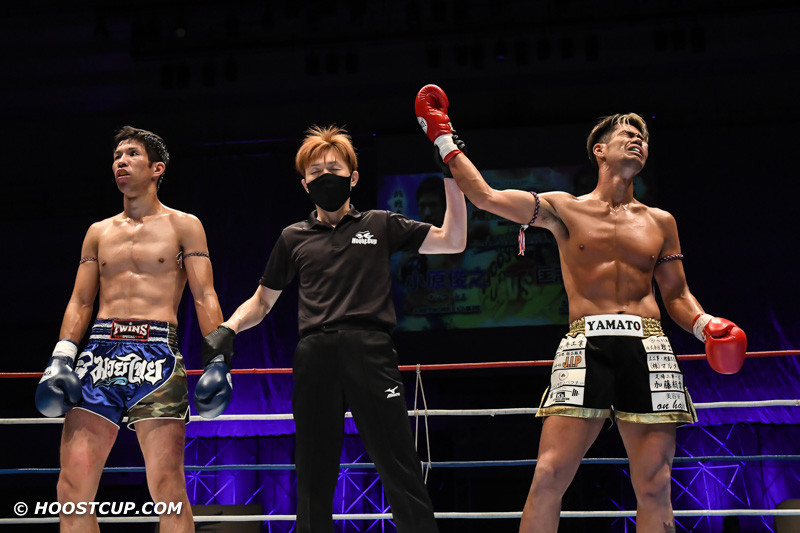 勝ち名乗りを受ける匡志YAMATO(右)